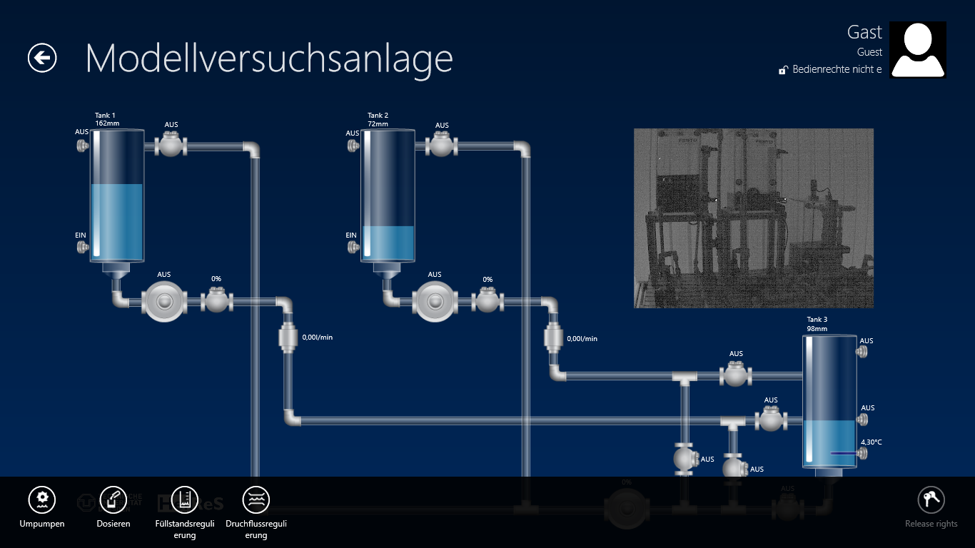 Um auch Nicht-Studenten einen Einblick zu gewähren, wie die Steuerung der Anlage von statten geht, wird ein Simulationsmodus bereitgestellt, mit dem einige Funktionen ohne Zugriff auf die Anlage ausprobiert werden können.